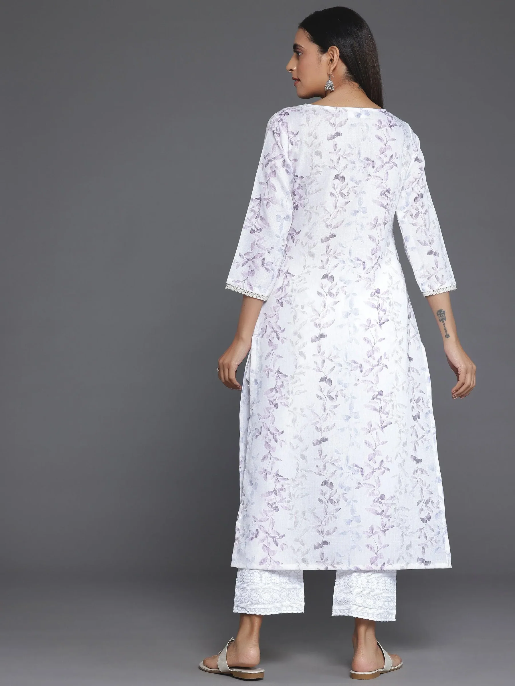 Off White Printed Cotton Straight Kurta